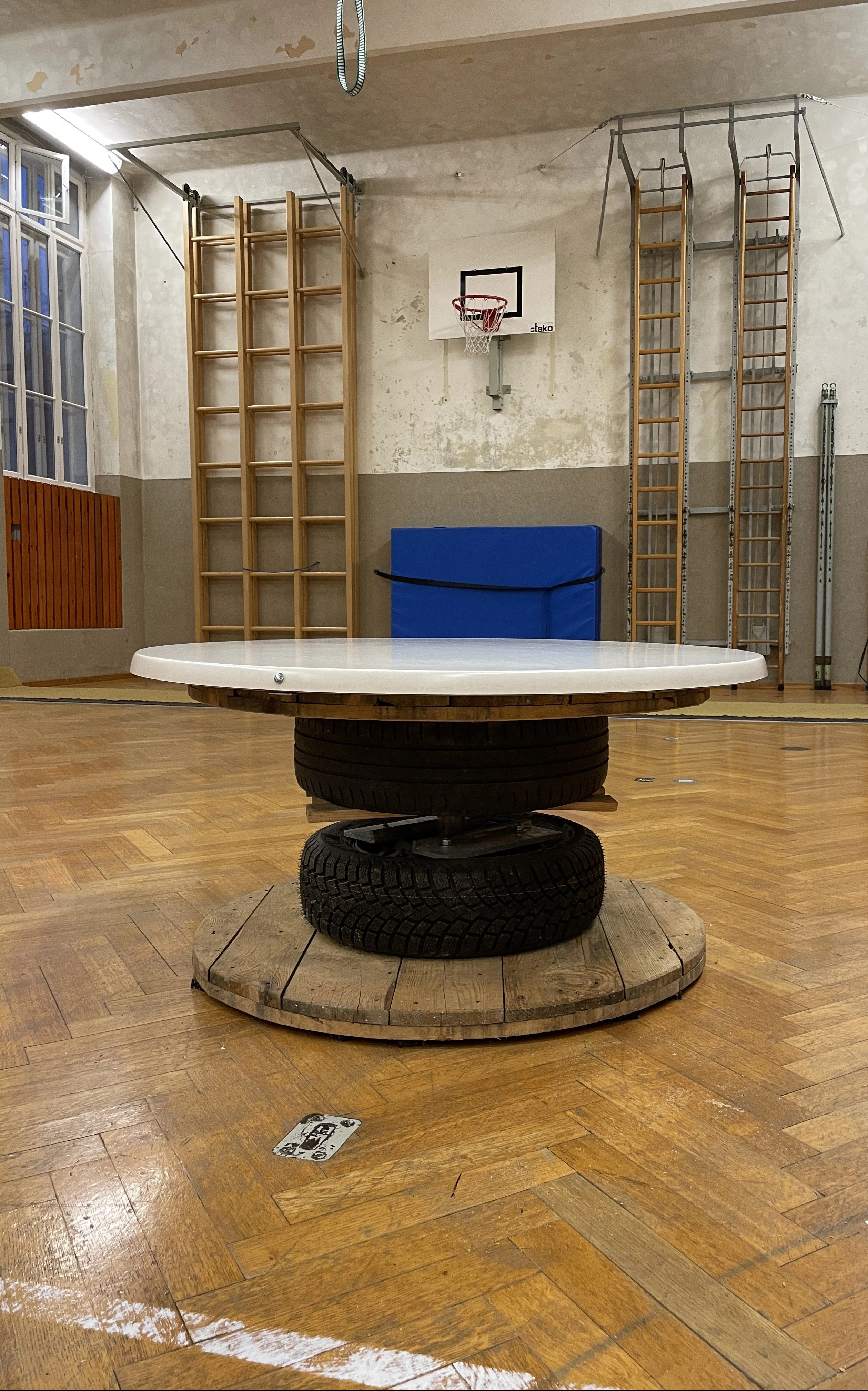 Wolfgang Wesner is a successful inventor and circus artist in Vienna, with whom I have already collaborated on other projects. During our joint training at the Vienna Circus Academy, we co-developed the cross-year final production „Flying High.“ Mr. Wesner assisted me in conceptualizing and constructing the spinning plate, which will continue to be developed and optimized.